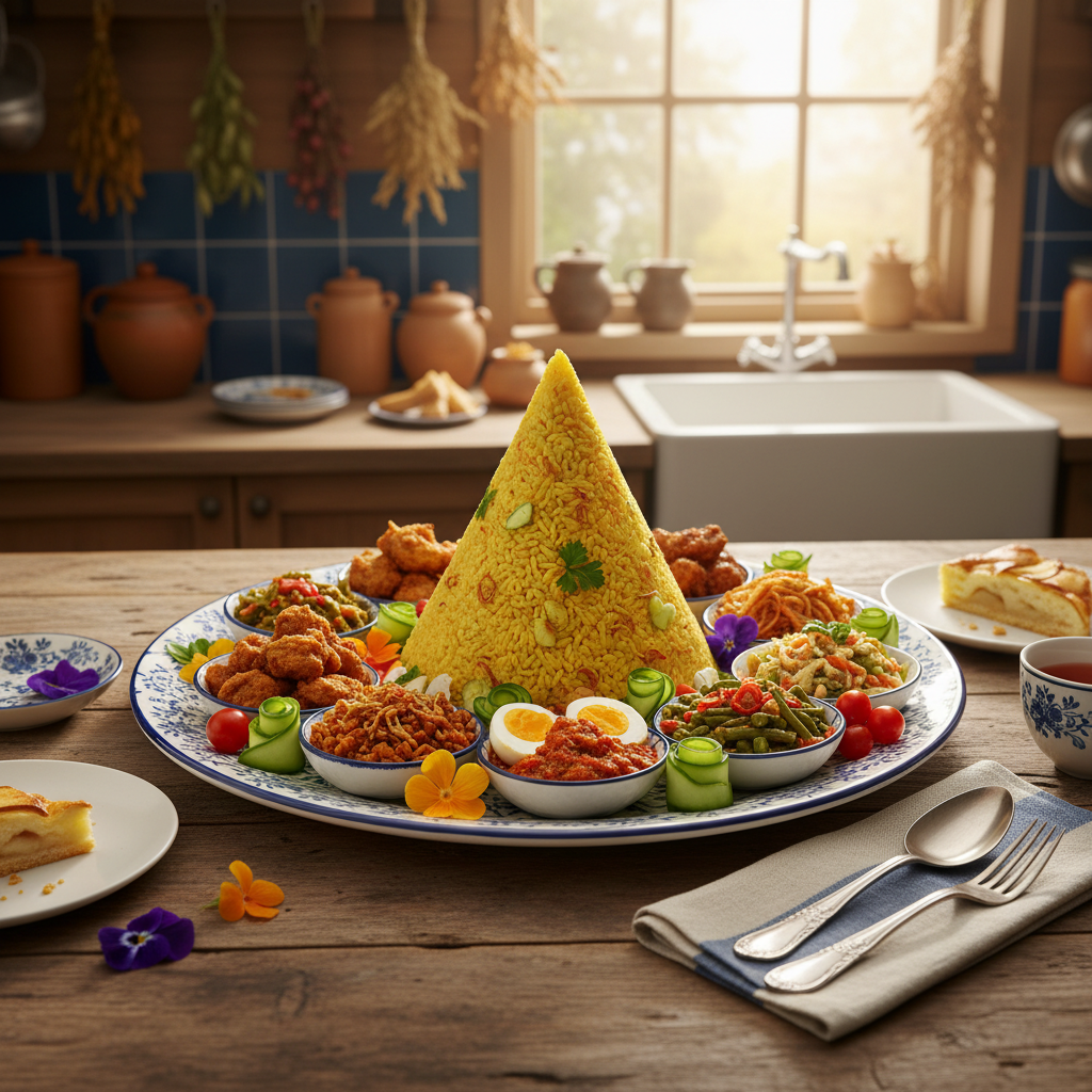 Voor als je wilt uitpakken, is er de Nasi Tumpeng. Deze feestelijke piramide van gele rijst met diverse bijgerechten is echt een spektakel om te zien. Met 60 minuten bereidingstijd is het perfect voor verjaardagen of andere speciale gelegenheden.