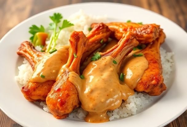 Deze kipvleugeltjes met pindasaus zijn een heerlijke combinatie van hartig en zoet. De romige pindasaus geeft de kip een rijke smaak en de airfryer zorgt voor een krokante textuur. Dit recept is eenvoudig en snel te bereiden, perfect voor een doordeweekse maaltijd. Serveer de kipvleugeltjes met witte rijst, atjar tjampoer en kroepoek voor een complete maaltijd. Een tip: maak je eigen pindasaus voor de beste smaak! Meng pindakaas, ketjap manis, sambal oelek, knoflook, gember, kokosmelk en een beetje limoensap. Je kunt de verhoudingen aanpassen aan je eigen smaak. Voor een extra romige saus kun je een scheutje room toevoegen. Laat de kipvleugeltjes minimaal 30 minuten marineren in de pindasaus. Bestrooi de kipvleugeltjes voor het serveren met gehakte pinda's en gebakken uitjes.