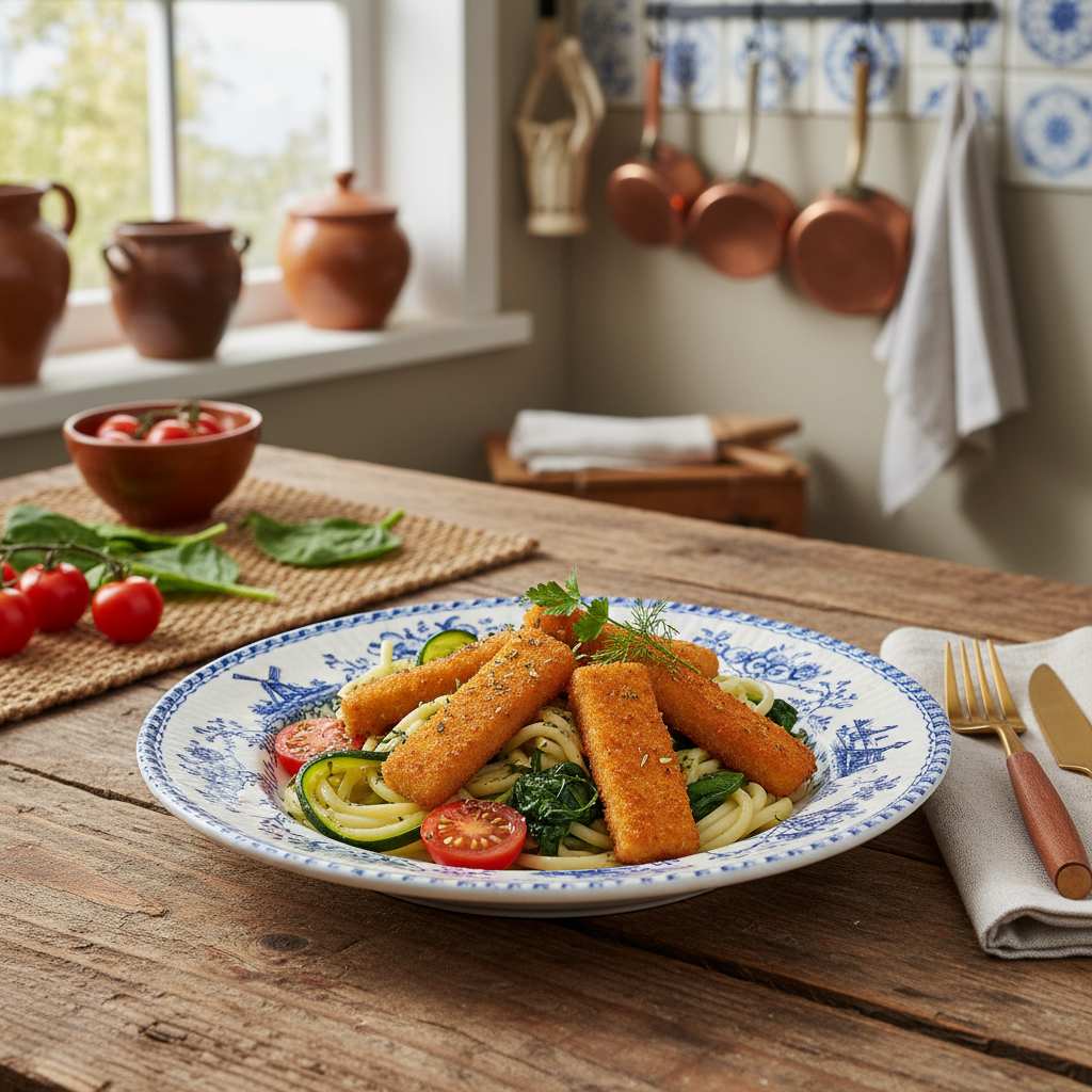 De magie zit hem in de contrast: zachte, al dente pasta tegen krokante, goudbruine vissticks. Het is alsof je de beste eigenschappen van twee favoriete gerechten samenbrengt tot iets compleet nieuws.