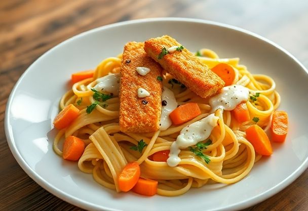 - Textuurcontrast: Zachte pasta + krokante vissticks = perfecte balans