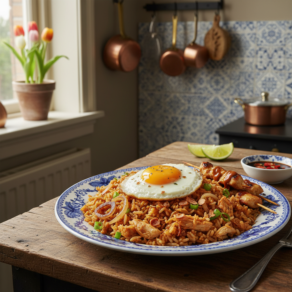 Een Indonesische klassieker die vol zit met specerijen, groenten en kip. De gebakken rijst en het spiegelei maken dit gerecht compleet. Binnen 30 minuten klaar en ideaal om restjes te verwerken.