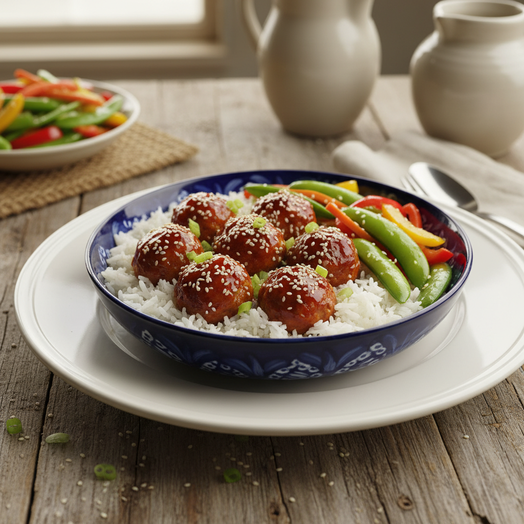 Sappige gehaktballetjes met sojasaus, gember en honing. Samen met rijst en groenten vormt dit een snelle, kruidige maaltijd die zowel hartig als licht zoet smaakt.