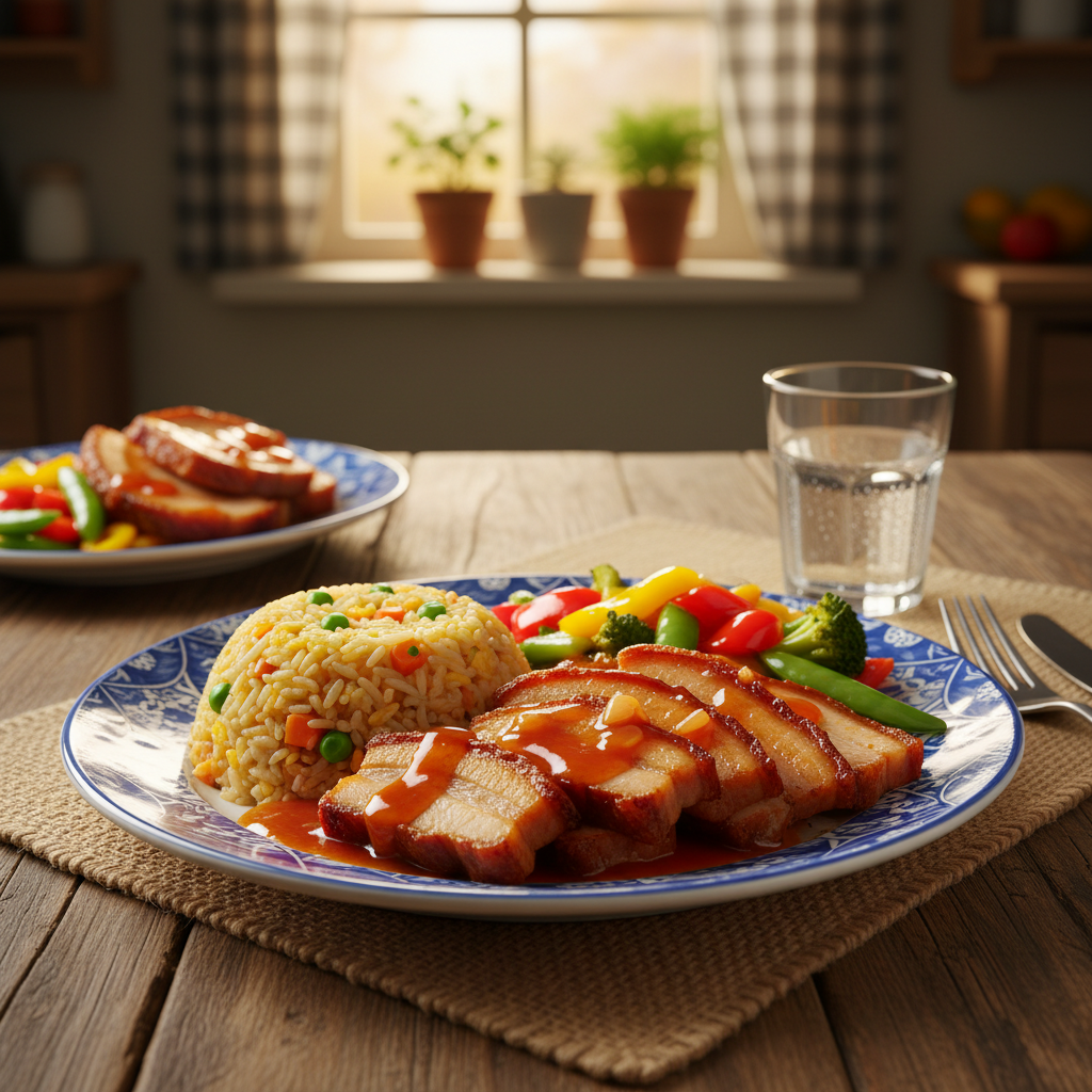 Krokant gebakken varkensvlees in een zoetzure saus, geserveerd met gebakken rijst. Deze Chinees-Nederlandse favoriet brengt de smaak van de afhaalchinees naar je eigen keuken – maar dan gezonder en verser.