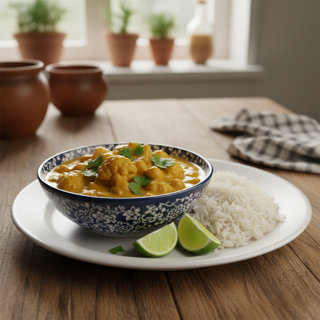 Een rijke, kruidige curry met kokosmelk en specerijen. Volledig plantaardig, voedzaam en ideaal voor een meatless day.