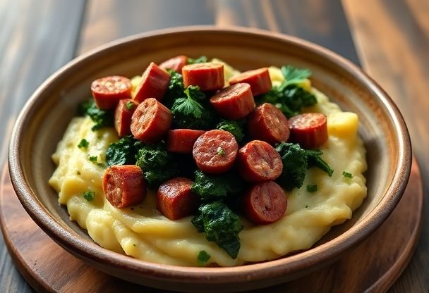 De ultieme winterklassieker. Romige aardappelpuree gemengd met boerenkool en geserveerd met een stevige rookworst. Dit gerecht is verwarmend, vullend en geliefd bij jong en oud. Serveer met mosterd of spekjes voor extra smaak.
